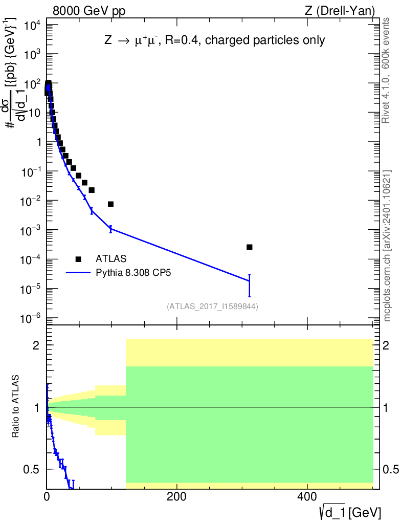 Lines: data, pythia8 8.308 CP5 |
