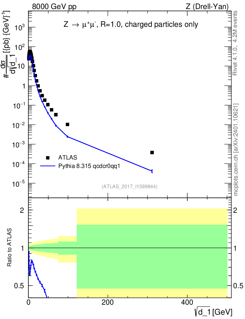 Lines: data, pythia8 8.315 qcdcr0qq1 |