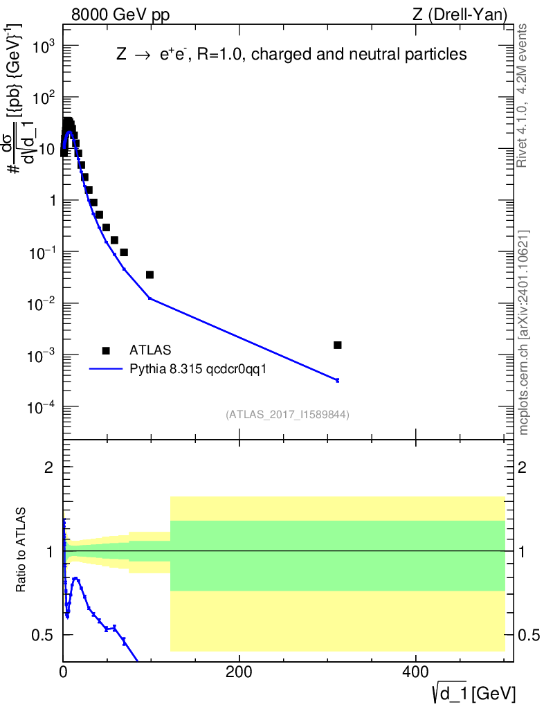 Lines: data, pythia8 8.315 qcdcr0qq1 |