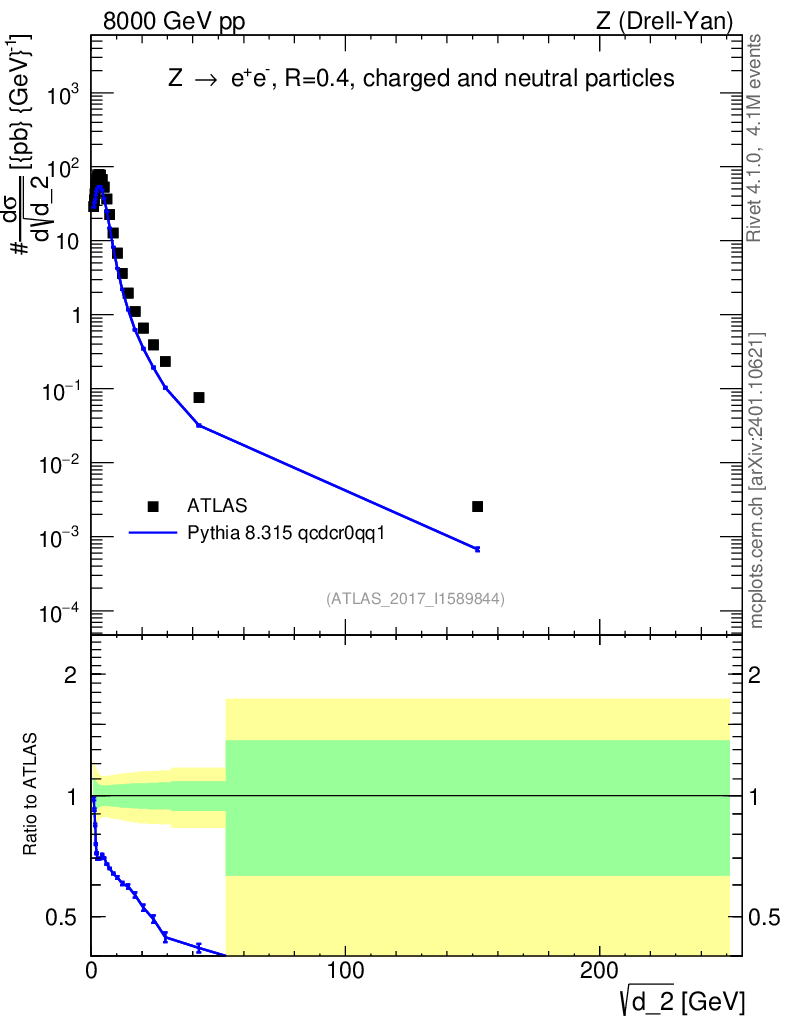 Lines: data, pythia8 8.315 qcdcr0qq1 |