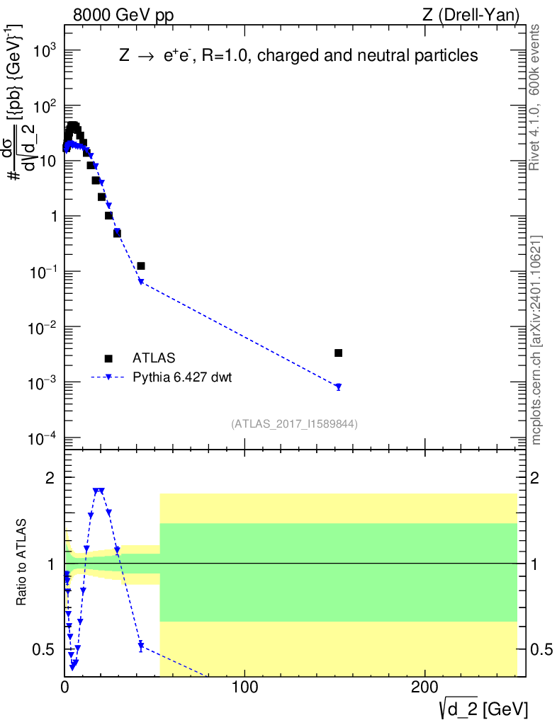 Lines: data, pythia6 6.427 dwt |