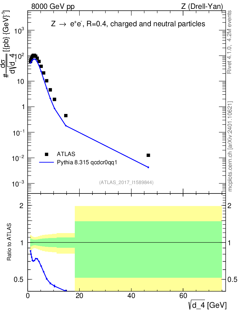Lines: data, pythia8 8.315 qcdcr0qq1 |