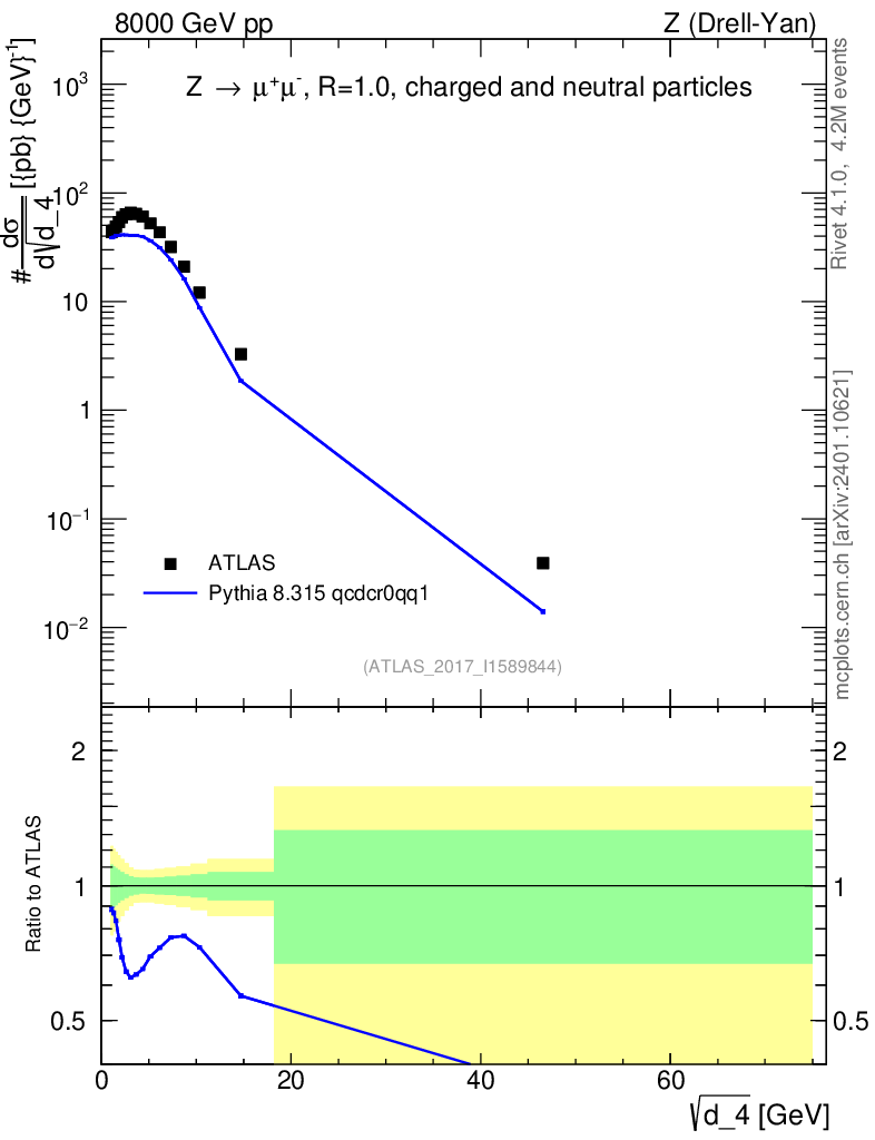 Lines: data, pythia8 8.315 qcdcr0qq1 |
