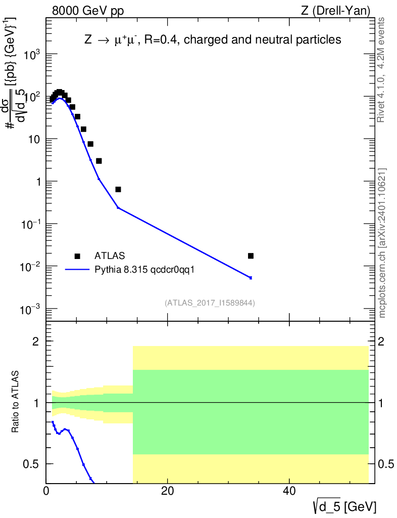 Lines: data, pythia8 8.315 qcdcr0qq1 |