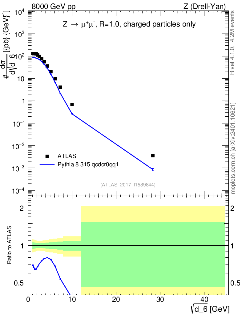 Lines: data, pythia8 8.315 qcdcr0qq1 |