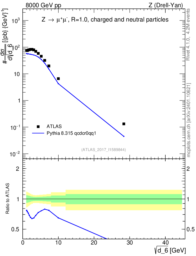 Lines: data, pythia8 8.315 qcdcr0qq1 |