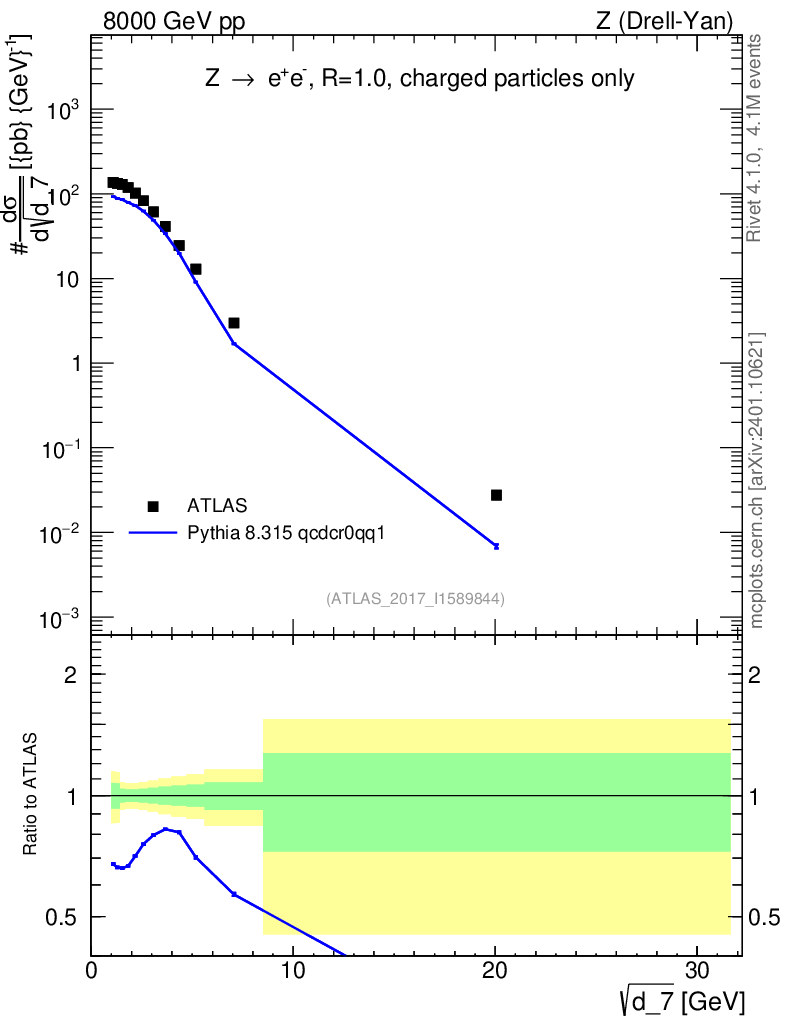 Lines: data, pythia8 8.315 qcdcr0qq1 |