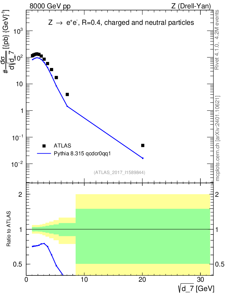 Lines: data, pythia8 8.315 qcdcr0qq1 |