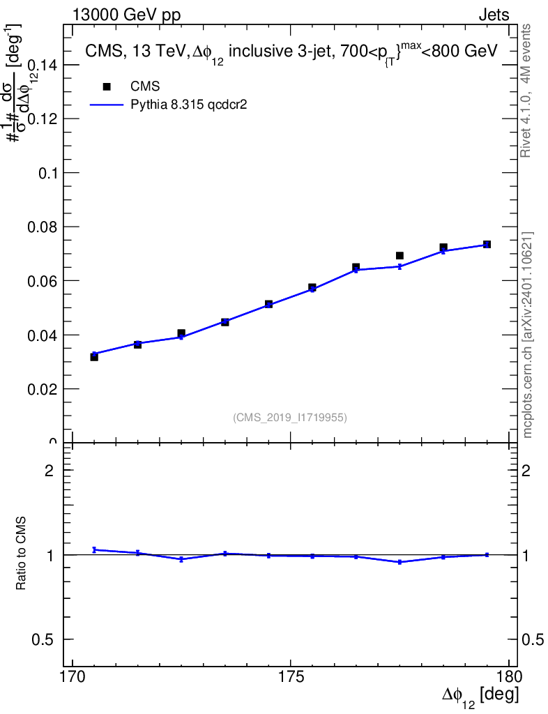 Lines: data, pythia8 8.315 qcdcr2 |