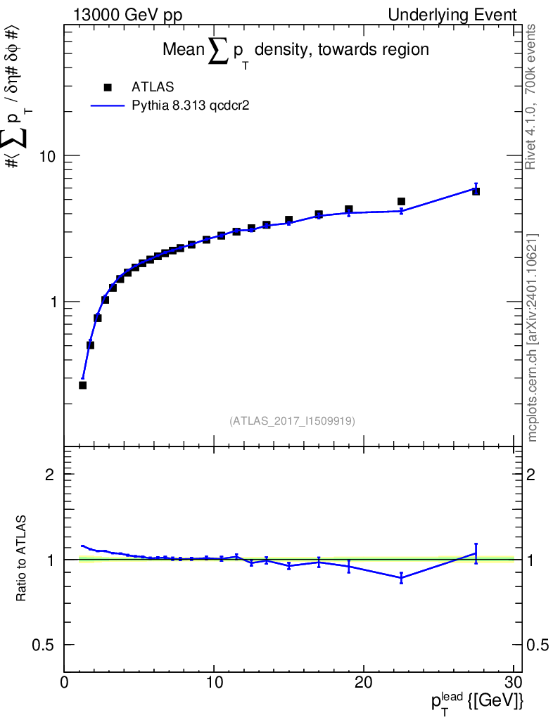 Lines: data, pythia8 8.313 qcdcr2 |
