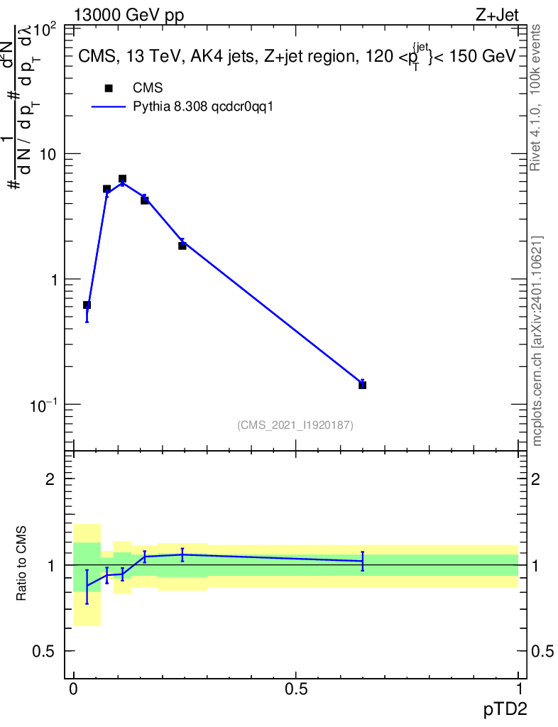Lines: data, pythia8 8.308 qcdcr0qq1 |
