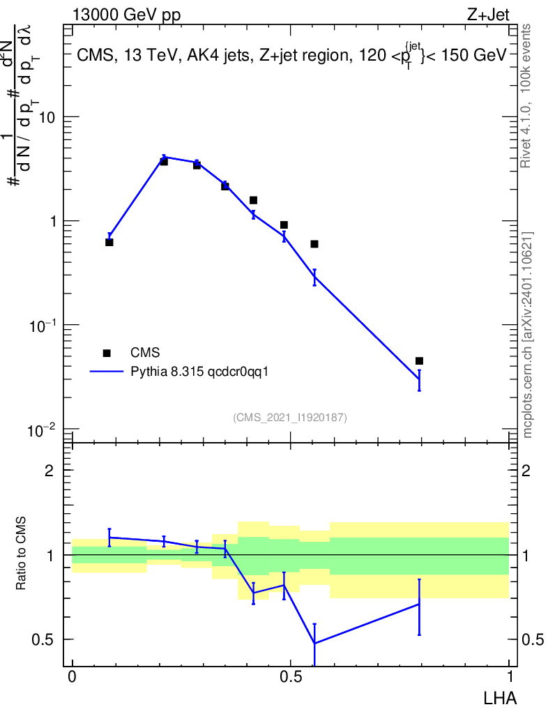 Lines: data, pythia8 8.315 qcdcr0qq1 |