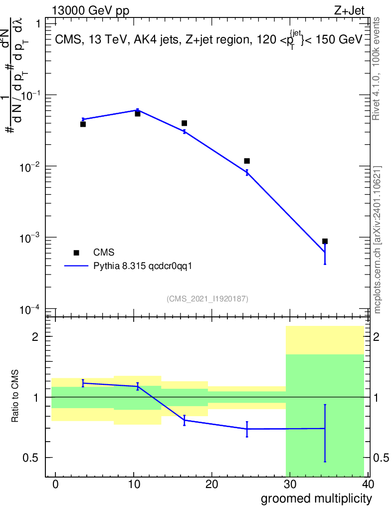 Lines: data, pythia8 8.315 qcdcr0qq1 |