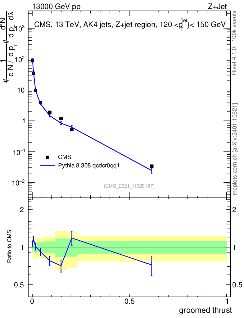 Lines: data, pythia8 8.308 qcdcr0qq1 |