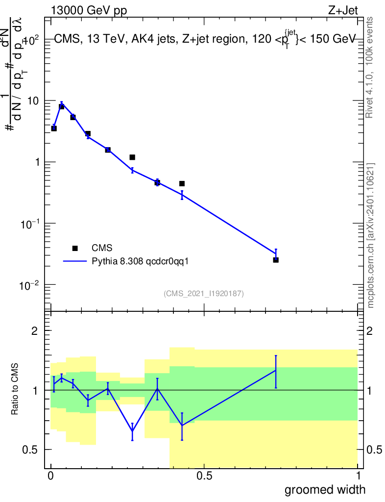 Lines: data, pythia8 8.308 qcdcr0qq1 |