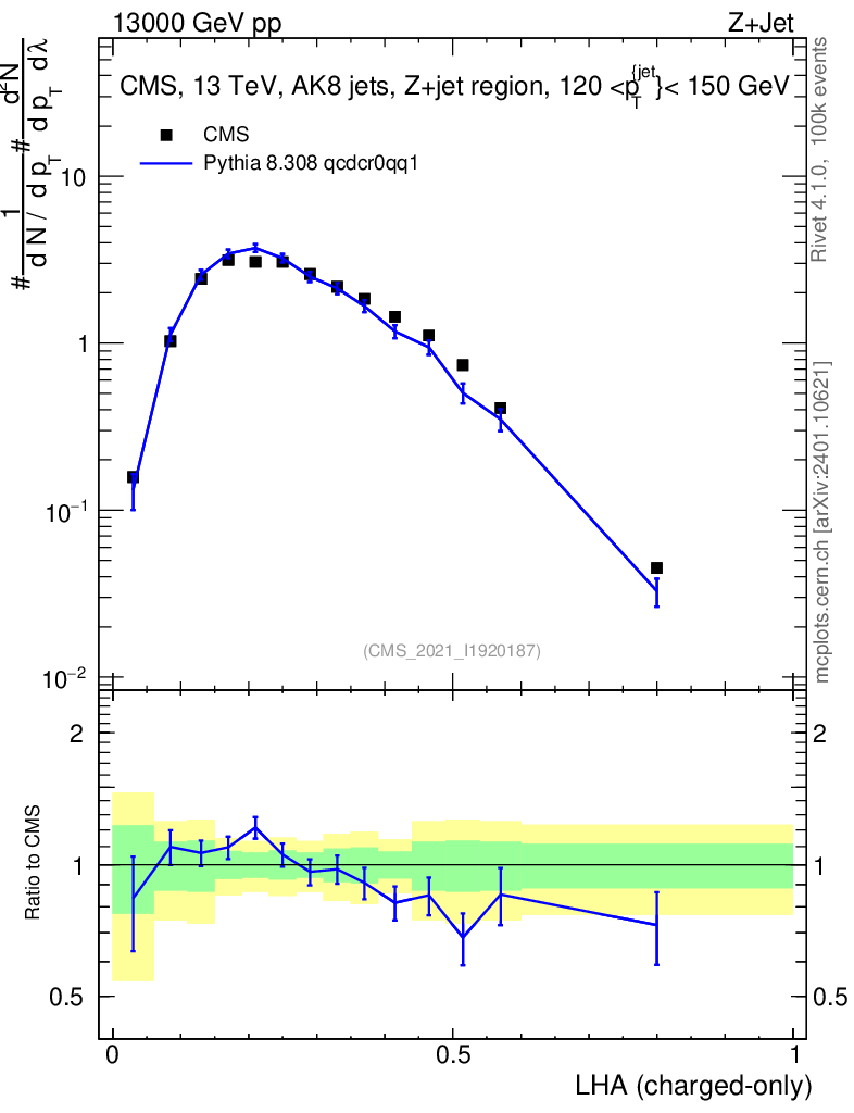 Lines: data, pythia8 8.308 qcdcr0qq1 |