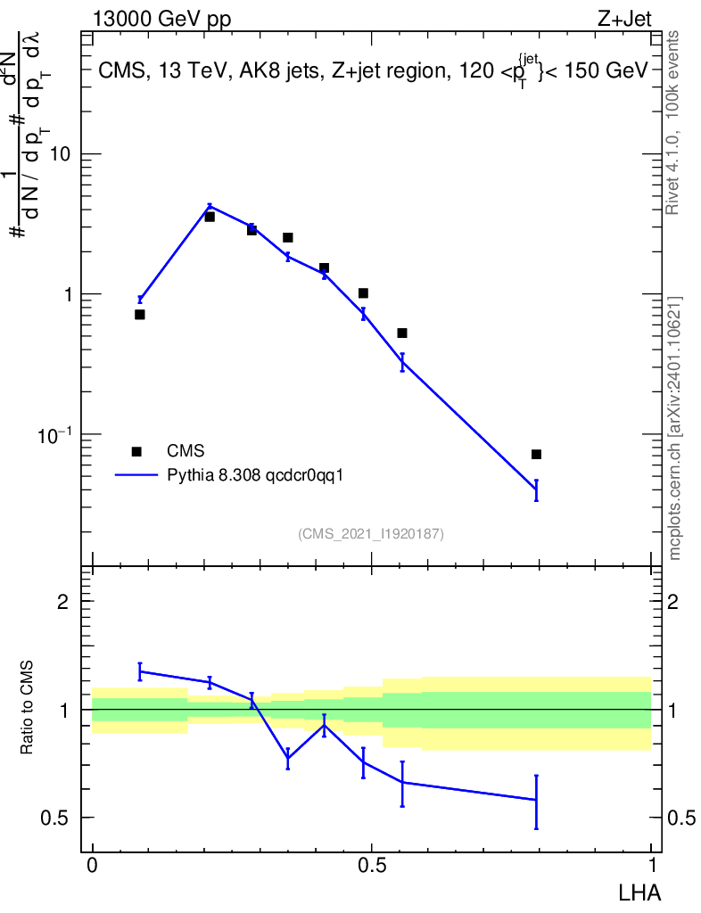 Lines: data, pythia8 8.308 qcdcr0qq1 |