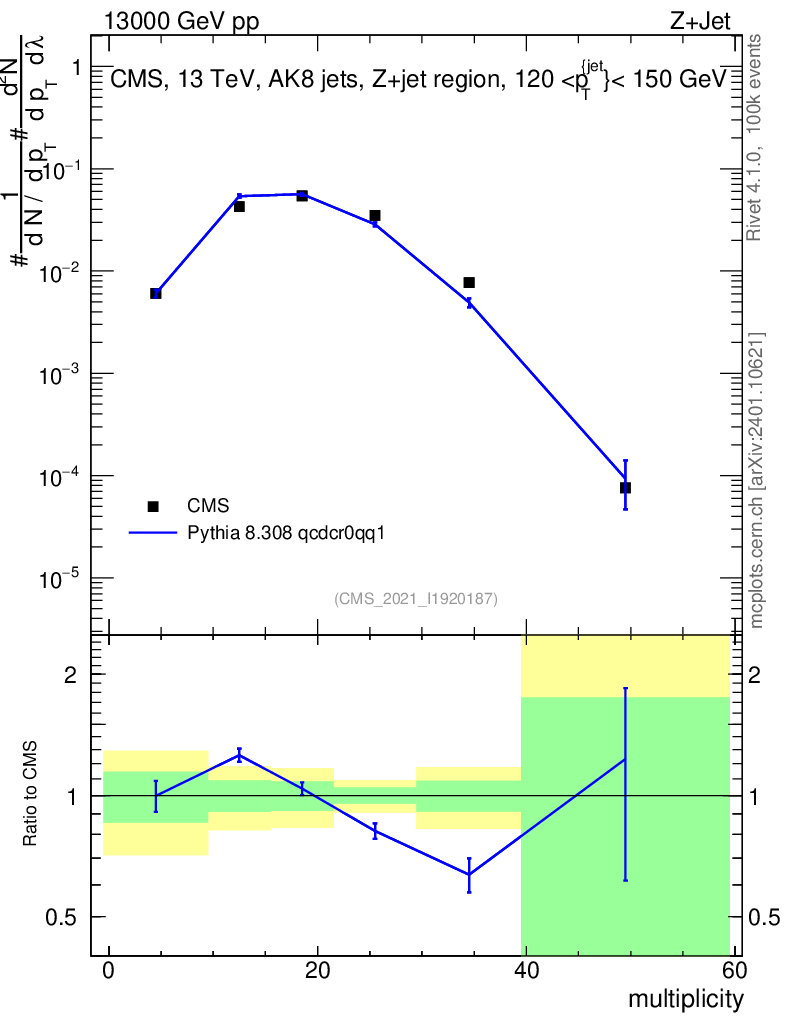 Lines: data, pythia8 8.308 qcdcr0qq1 |