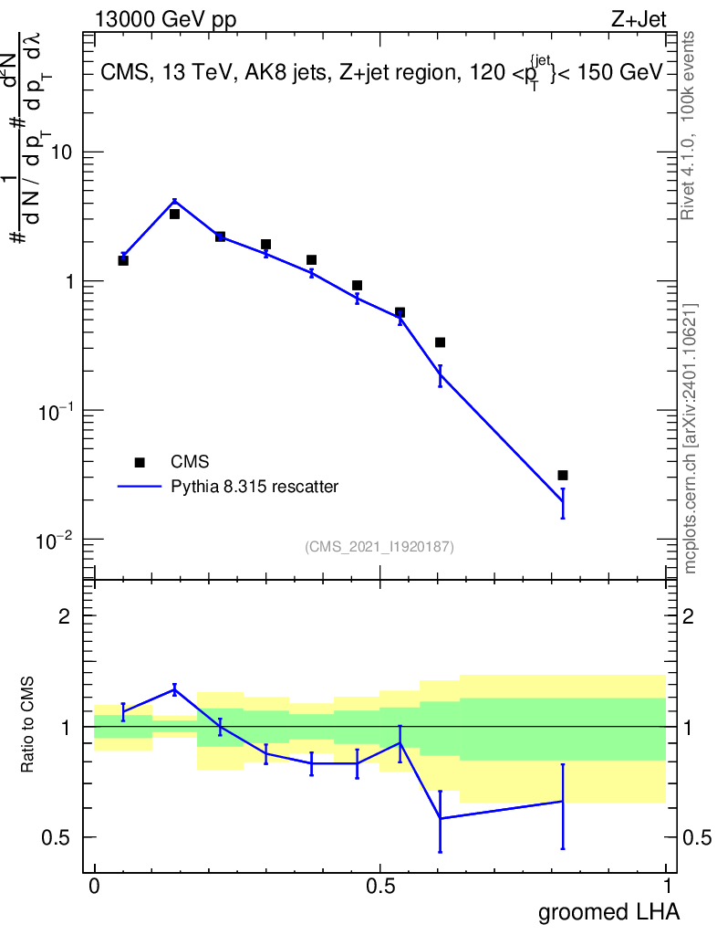 Lines: data, pythia8 8.315 rescatter |