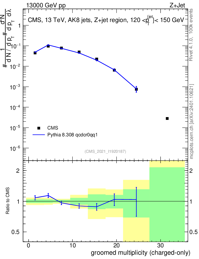 Lines: data, pythia8 8.308 qcdcr0qq1 |