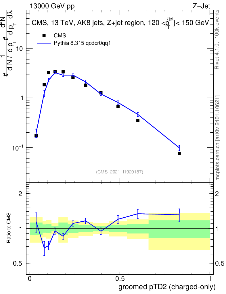 Lines: data, pythia8 8.315 qcdcr0qq1 |
