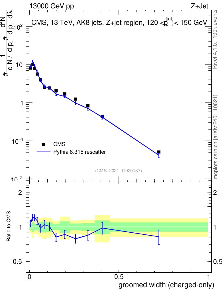 Lines: data, pythia8 8.315 rescatter |