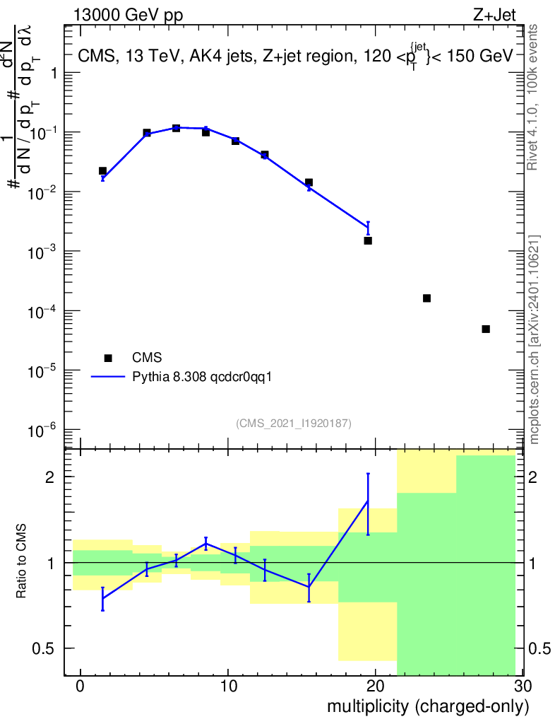 Lines: data, pythia8 8.308 qcdcr0qq1 |