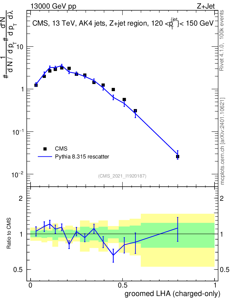 Lines: data, pythia8 8.315 rescatter |