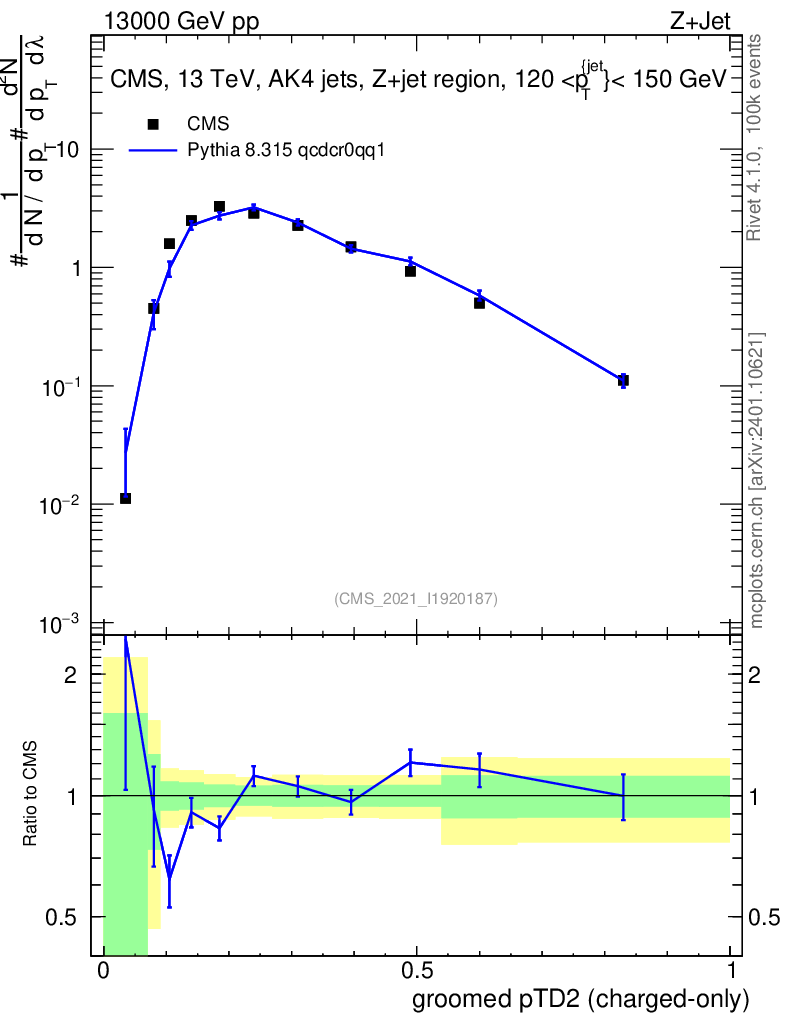 Lines: data, pythia8 8.315 qcdcr0qq1 |