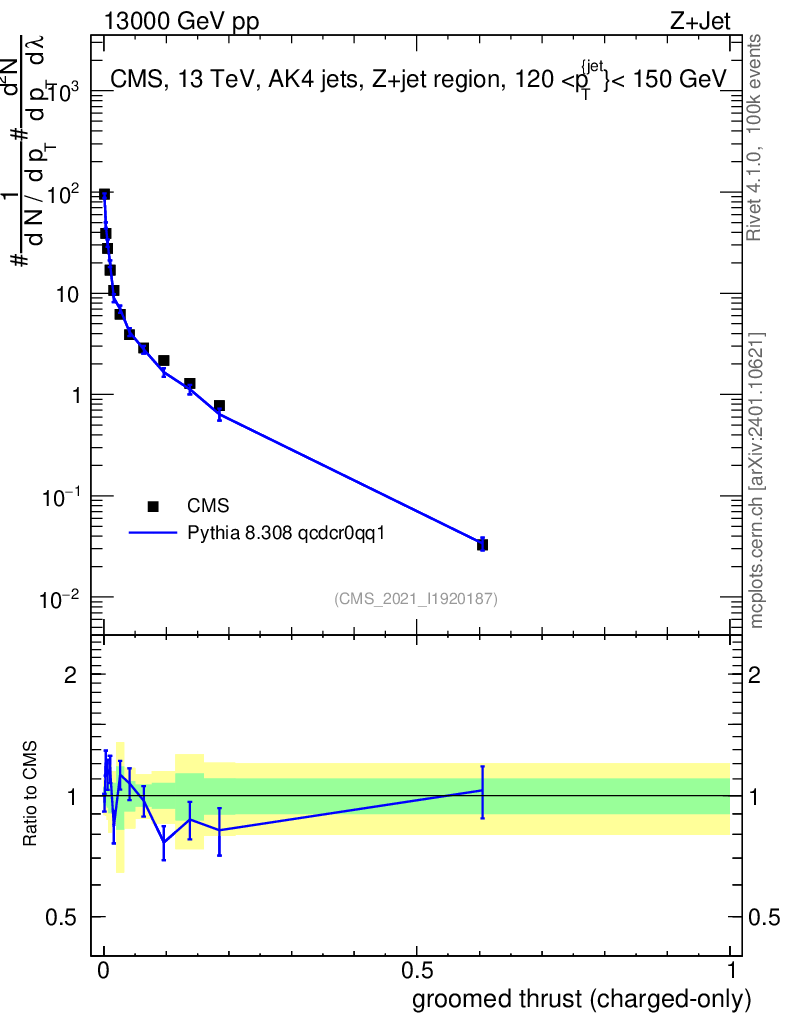 Lines: data, pythia8 8.308 qcdcr0qq1 |