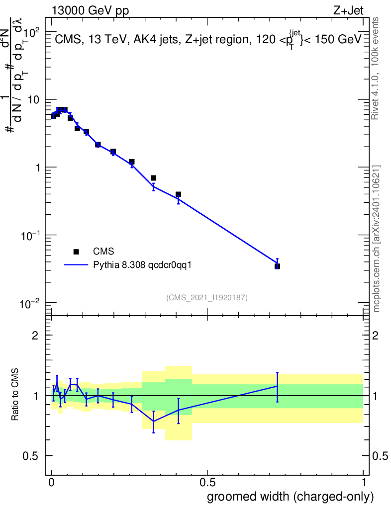 Lines: data, pythia8 8.308 qcdcr0qq1 |