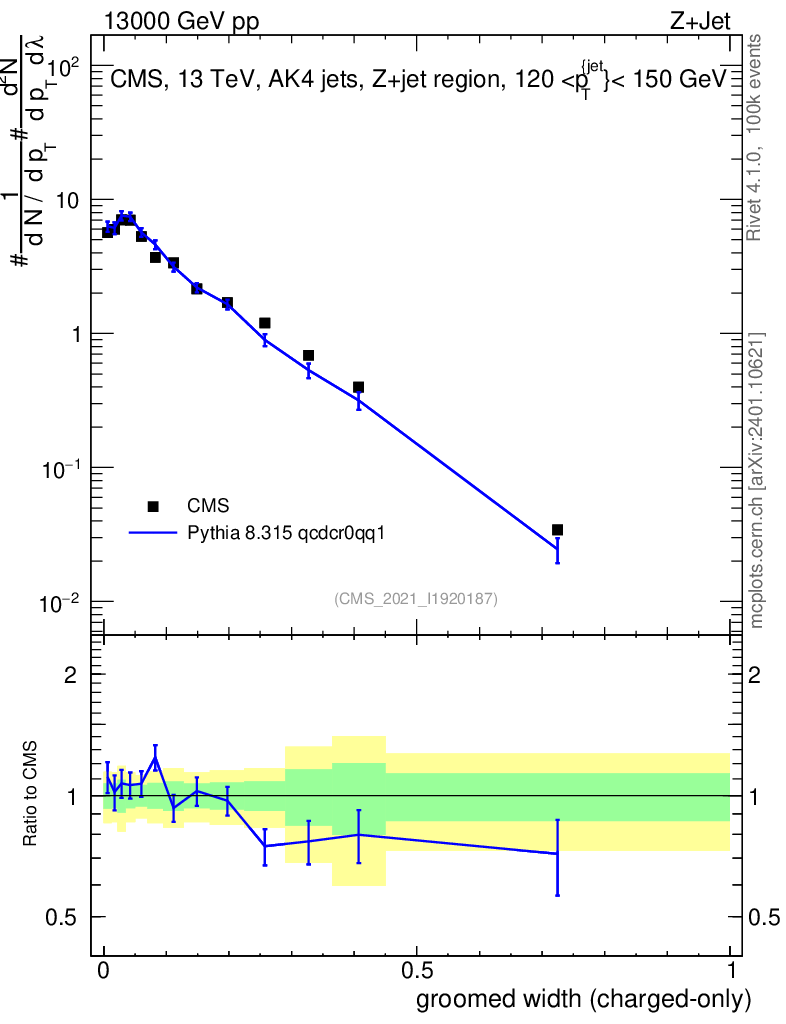 Lines: data, pythia8 8.315 qcdcr0qq1 |