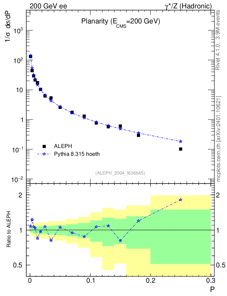 Lines: data, pythia8 8.315 hoeth |