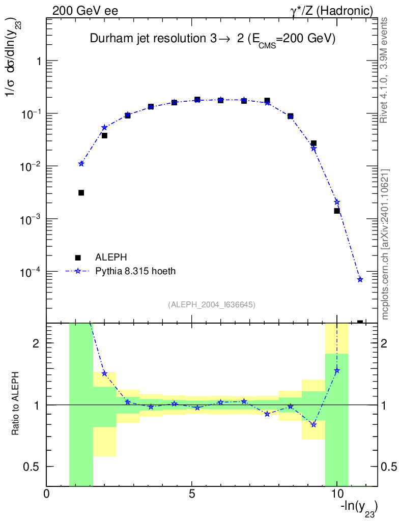 Lines: data, pythia8 8.315 hoeth |