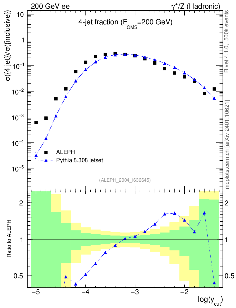 Plot of rate-4jet in 200 GeV ee collisions
