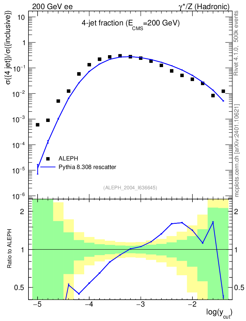 Lines: data, pythia8 8.308 rescatter |