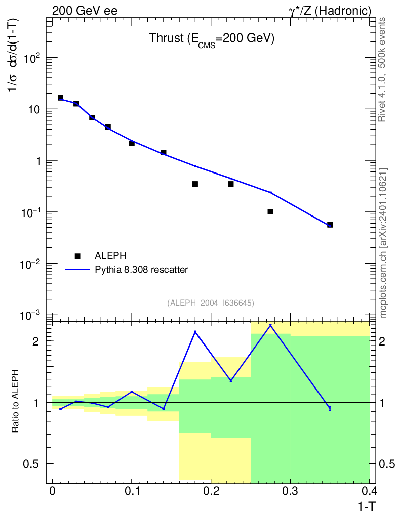 Lines: data, pythia8 8.308 rescatter |