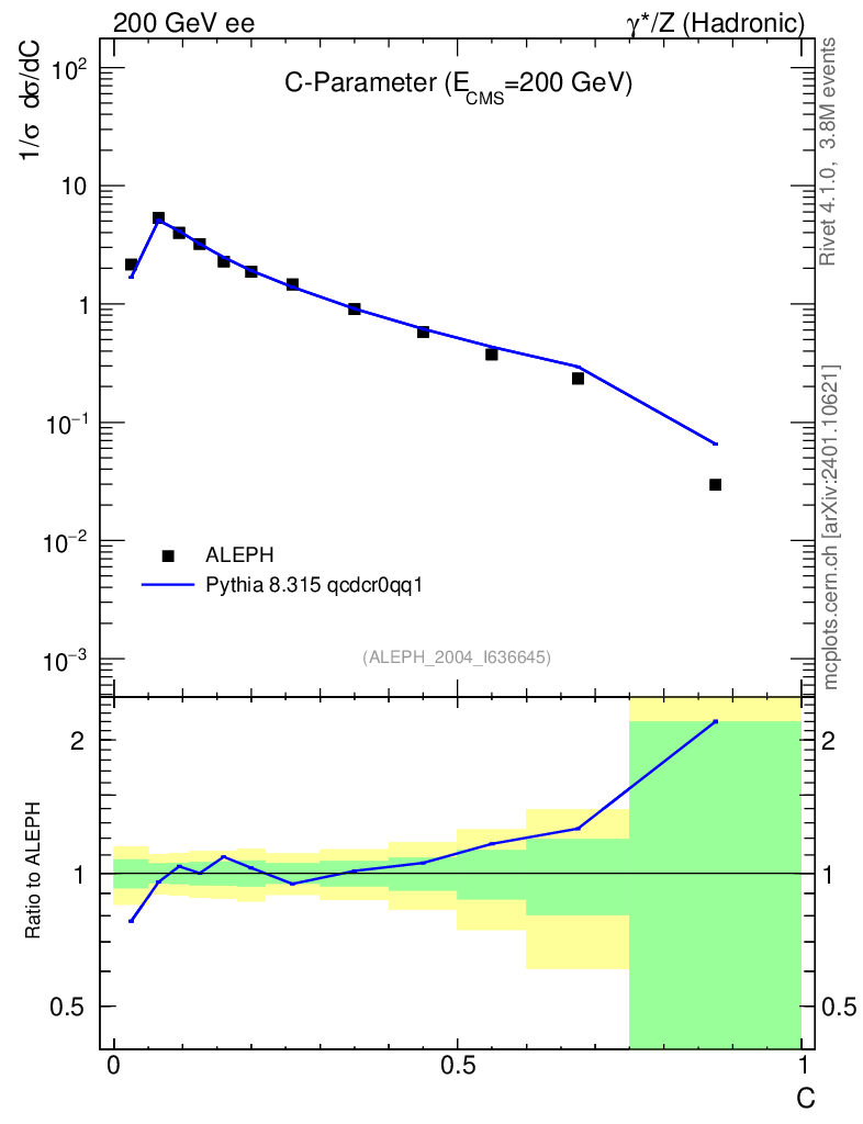 Lines: data, pythia8 8.315 qcdcr0qq1 |