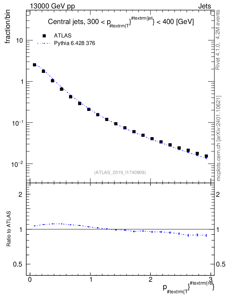 Lines: data, pythia6 6.428 376 |