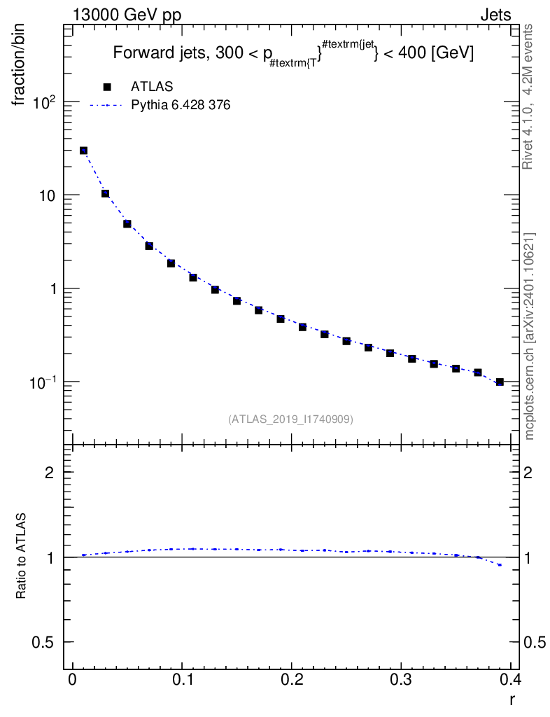 Lines: data, pythia6 6.428 376 |