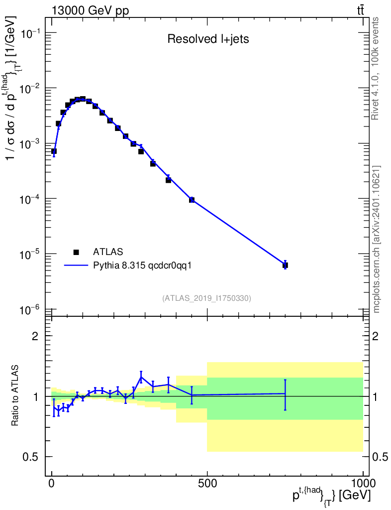 Lines: data, pythia8 8.315 qcdcr0qq1 |