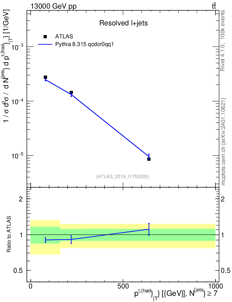 Lines: data, pythia8 8.315 qcdcr0qq1 |