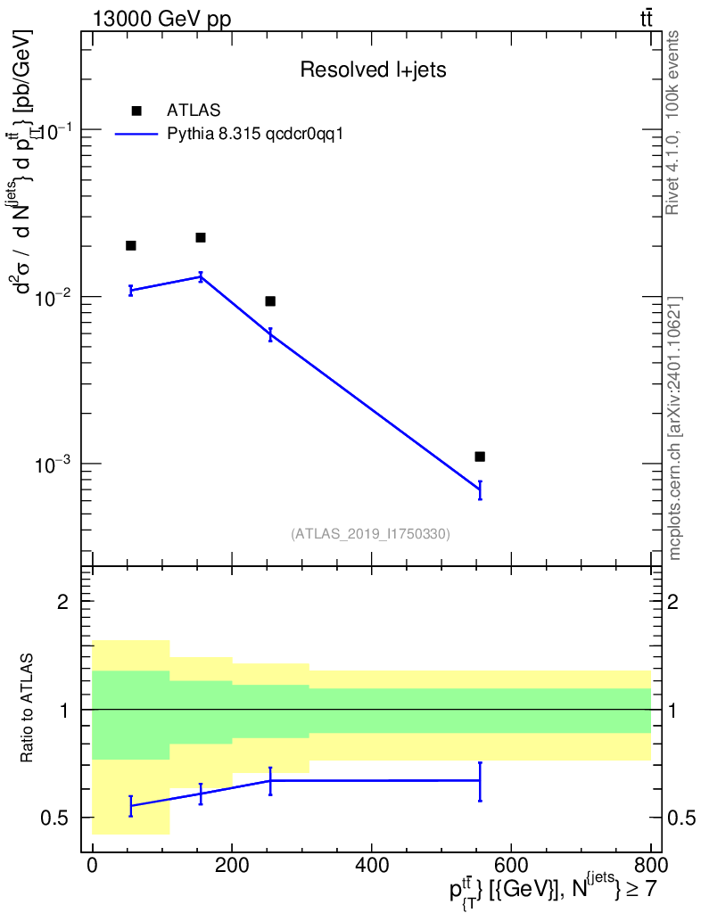 Lines: data, pythia8 8.315 qcdcr0qq1 |