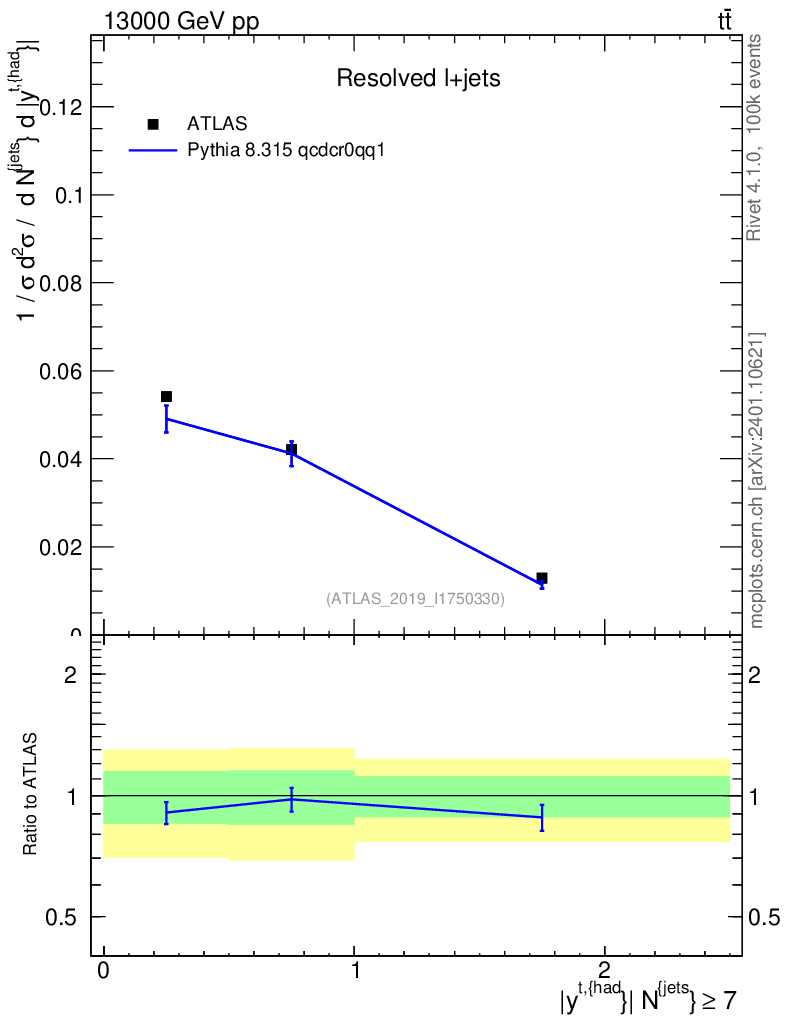 Lines: data, pythia8 8.315 qcdcr0qq1 |