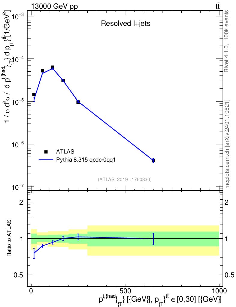 Lines: data, pythia8 8.315 qcdcr0qq1 |