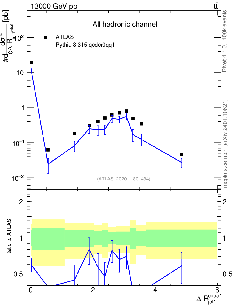 Lines: data, pythia8 8.315 qcdcr0qq1 |