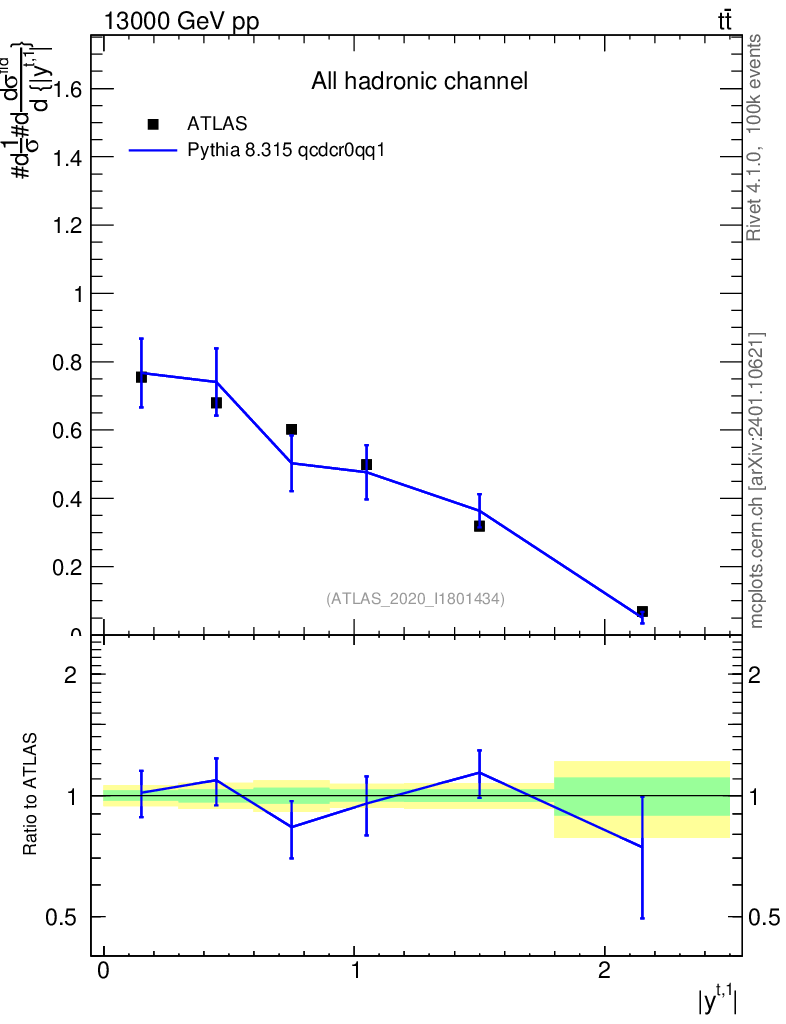 Lines: data, pythia8 8.315 qcdcr0qq1 |