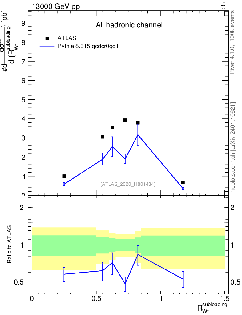 Lines: data, pythia8 8.315 qcdcr0qq1 |