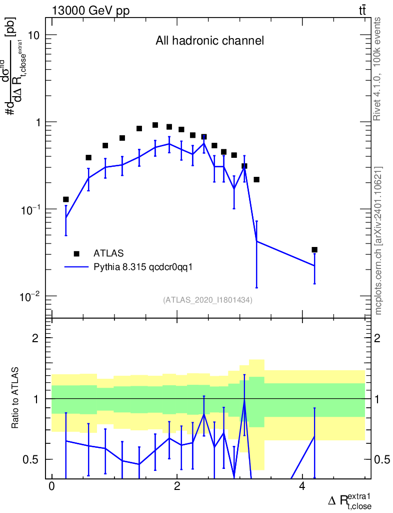 Lines: data, pythia8 8.315 qcdcr0qq1 |