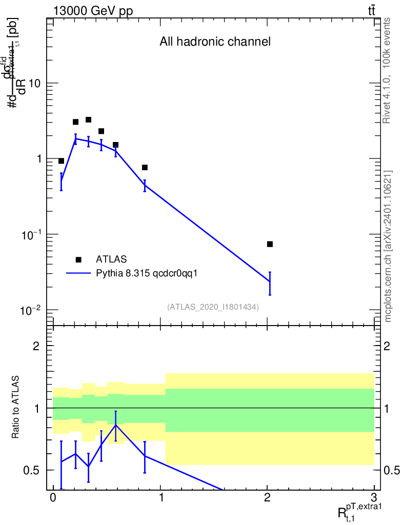Lines: data, pythia8 8.315 qcdcr0qq1 |